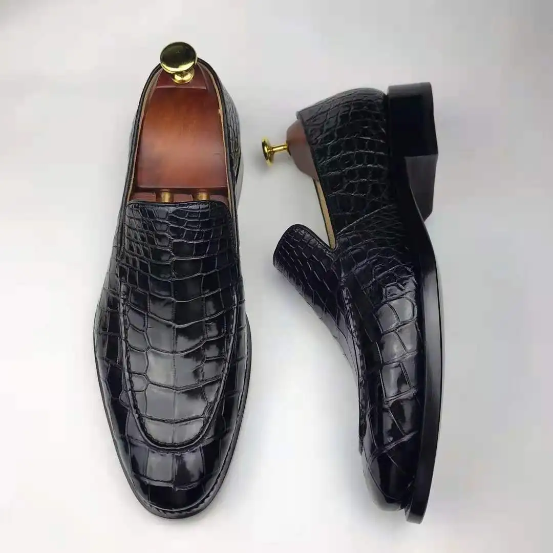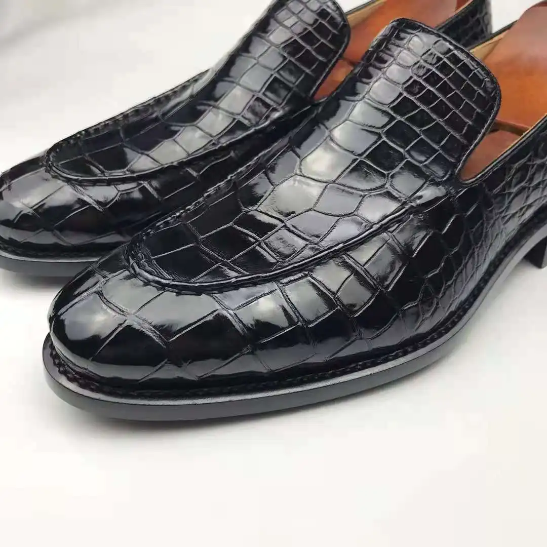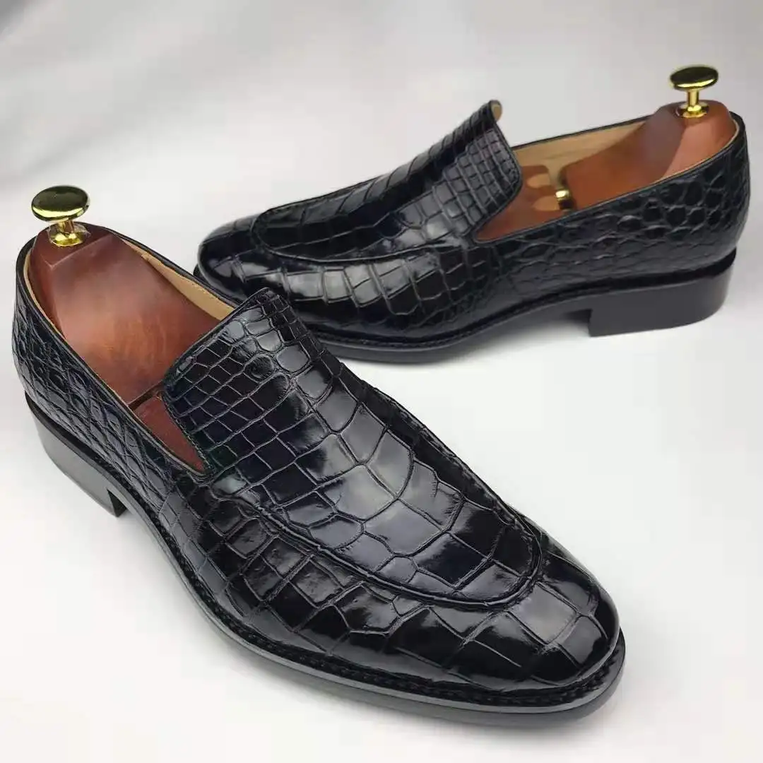 Goodyear Welted Formal Business Shoes for Men Luxury Crocodile Leather Loafers Wedding Party Wear Black Men's Dress Shoes